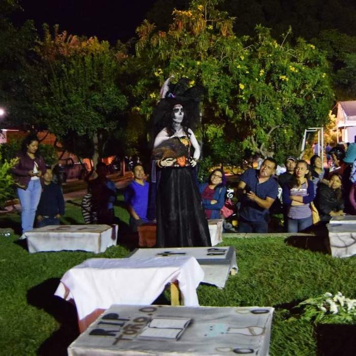 El dia de muertos el 31 de octubre en Oaxaca es una festividad muy importante como en toda la republica mexicana. En este tour visitaremos 2 panteones: El panteon general de Oaxaca y el panteon de Santa Cruz Xoxocotlan. Apartir de 8 de la noche empezamos visitando el panteón general, donde normalmente las personas llegan con flores y velas, tambien podremos apreciar muchas personas disfrazadas de esqueletos, brujas,diablitos, etc. Terminando de visitar el panteón general nos dirigimos al panteon de Santa Cruz Xoxocotlan una comunidad con uno de los panteones mas grandes del valle de oaxaca, aqui los habitantes pasan toda la noche con sus fieles difuntos, acompañados de musica de banda, trio o mariachi, y claro llevando la comida que mas le gustaba al difunto, terminando hasta altas horas de las madrugadas.