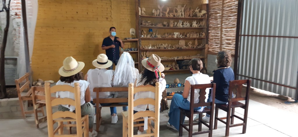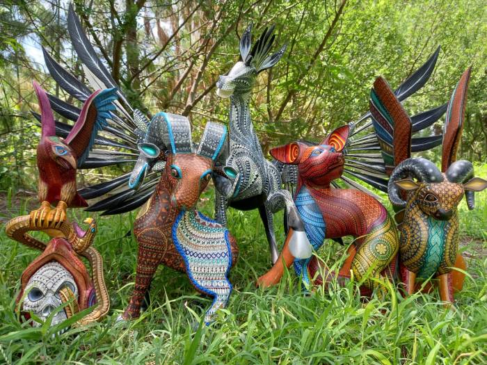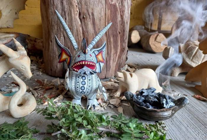 El pueblo de San Antonio Arrazola y San Martin Tilcajete, es famoso por ser el lugar en donde se elaboran alebrijes de zompantle, copal o copalillo que los artesanos extraen directamente o compran a los “copaleros”. Estos seres místicos fusionan partes de distintos seres, la madera debe ser tallada antes de que seque para darle la forma que tendrá, una vez finalizado este proceso se lija y se prepara para su decoración. Los artesanos pintan la madera y dibujan sobre ésta con diversas técnicas para dar el colorido y el diseño final a estas figuras.