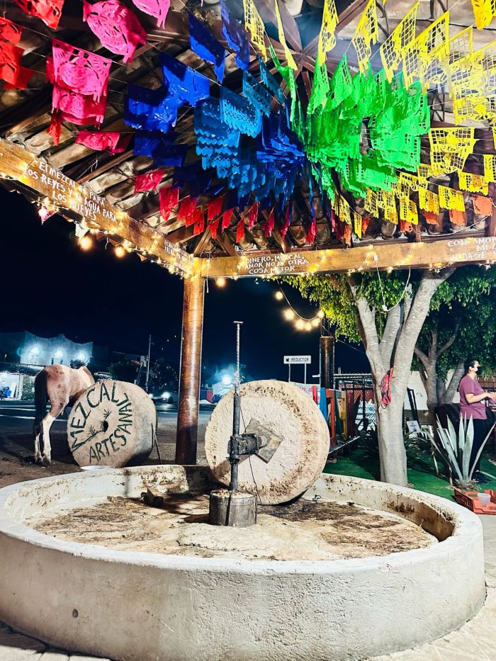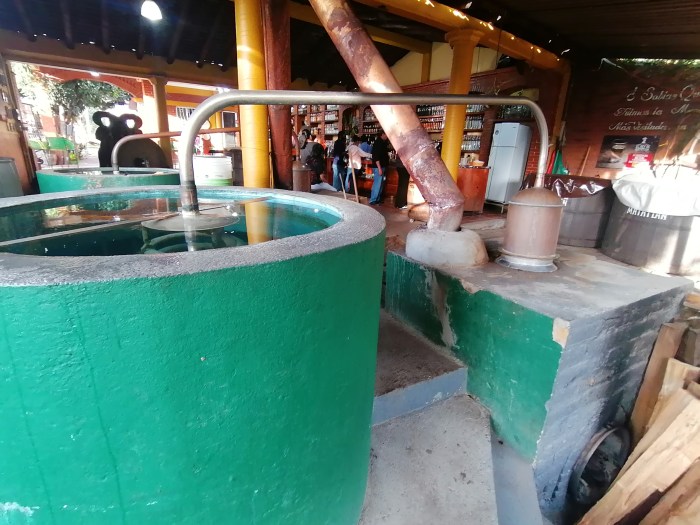 En la fábrica de mezcal se les dará un recorrido para que se pueda apreciar como se elabora un mezcal artesanal en Oaxaca. Tambien conoceremos los diferentes tipos de agaves con los cuales se elaboran los mezcales, y como se preparan las cremas de mezcal que llevan otro procedimiento. Terminando la explicación pasaremos a la barra para que puedan probar alrededor de 30 diferente tipos de cremas de mezcales y los diferentes tipos de mezcales tradicionales como son: gusano,pechuga, añejo, espadin,tobala,cuishe, entre otros.